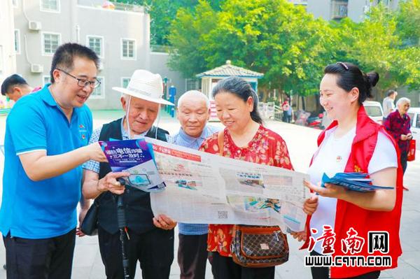 “有人给你打电话,自称是你的亲戚,喊你转钱,请千万不要相信!”6月23日,区融媒体中心(传媒集团)组织党员、预备党员和入党积极分子前往桂林街道东风社区、双江镇杨闇公旧居开展“让党旗在基层一线高高飘扬”主题党日活动,给社区居民科普反诈骗知识。图为工作人员为社区居民讲解防诈注意事项。