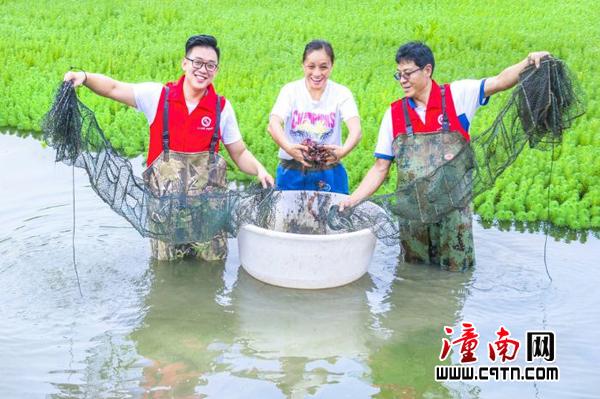 近年来,寿桥镇花铺村在实施乡村振兴战略中,引进农业龙头企业,带领群众大力发展生态小龙虾、香脆李、桃子、核桃、花椒种植,因地制宜培育特色产业,推动现代农业高质量发展,为群众持续稳定增收打下坚实基础,既壮大了集体经济,又富了百姓。图为寿桥镇志愿者帮助水产养殖户收获小龙虾。(特约摄影 杨毅)