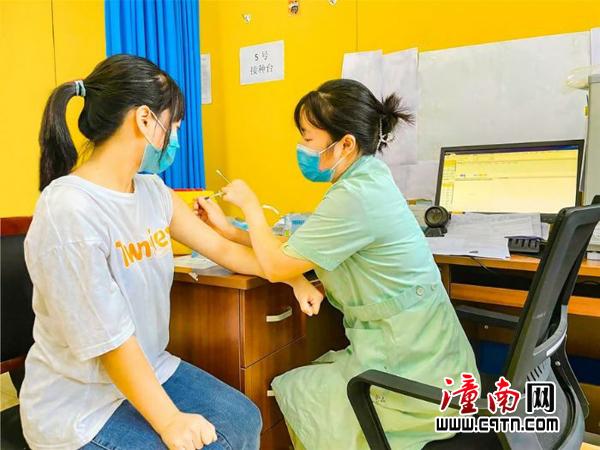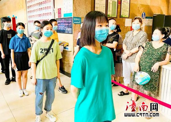 根据统一安排,我区于8月1日全面启动12-17周岁人群新冠病毒疫苗接种工作,共同筑起未成年人安全免疫屏障。图为近日,桂林社区卫生服务中心接种点,同学们依次排队接种新冠病毒疫苗。
