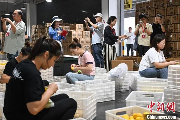 7月8日,重庆潼南,海外华文媒体代表在雪王农业(重庆)有限公司包装车间参观。当日,“行走中国·2024海外华文媒体川渝行”参访团一行走进重庆市潼南区,实地了解当地柠檬产业发展。据悉,重庆潼南是世界三大柠檬产地之一,柠檬种植面积达32万亩,柠檬鲜果及柠檬产品远销俄罗斯、新加坡、东南亚等30多个国家和地区。近年来,“潼南柠檬”从技术研发、种苗培育、标准化种植、精深加工等为一体的柠檬全产业链在当地日臻完善。