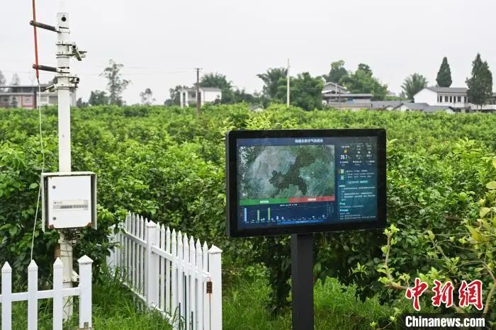 7月8日,重庆潼南,精细化数字气象服务“守护”柏梓镇小岭村柠檬基地。当日,“行走中国·2024海外华文媒体川渝行”参访团一行走进重庆市潼南区,实地了解当地柠檬产业发展。据悉,重庆潼南是世界三大柠檬产地之一,柠檬种植面积达32万亩,柠檬鲜果及柠檬产品远销俄罗斯、新加坡、东南亚等30多个国家和地区。近年来,“潼南柠檬”从技术研发、种苗培育、标准化种植、精深加工等为一体的柠檬全产业链在当地日臻完善。