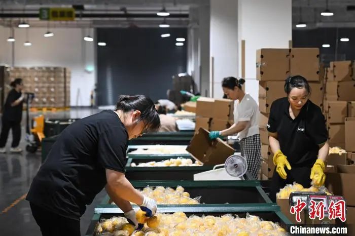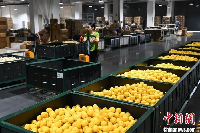 7月8日,在位于重庆潼南的雪王农业(重庆)有限公司,工人在打包柠檬鲜果。当日,“行走中国·2024海外华文媒体川渝行”参访团一行走进重庆市潼南区,实地了解当地柠檬产业发展。据悉,重庆潼南是世界三大柠檬产地之一,柠檬种植面积达32万亩,柠檬鲜果及柠檬产品远销俄罗斯、新加坡、东南亚等30多个国家和地区。近年来,“潼南柠檬”从技术研发、种苗培育、标准化种植、精深加工等为一体的柠檬全产业链在当地日臻完善。