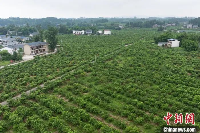 7月8日,航拍重庆潼南柏梓镇小岭村柠檬基地。当日,“行走中国·海外华文媒体川渝行”参访团一行走进重庆市潼南区,实地了解当地柠檬产业发展。据悉,重庆潼南是世界三大柠檬产地之一,柠檬种植面积达32万亩,柠檬鲜果及柠檬产品远销俄罗斯、新加坡、东南亚等30多个国家和地区。近年来,“潼南柠檬”从技术研发、种苗培育、标准化种植、精深加工等为一体的柠檬全产业链在当地日臻完善。