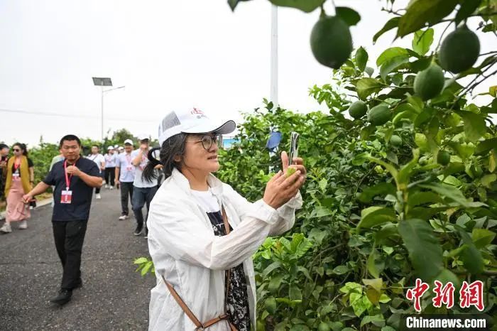 7月8日,海外华文媒体代表在重庆潼南柏梓镇小岭村柠檬基地参观。当日,“行走中国·2024海外华文媒体川渝行”参访团一行走进重庆市潼南区,实地了解当地柠檬产业发展。据悉,重庆潼南是世界三大柠檬产地之一,柠檬种植面积达32万亩,柠檬鲜果及柠檬产品远销俄罗斯、新加坡、东南亚等30多个国家和地区。近年来,“潼南柠檬”从技术研发、种苗培育、标准化种植、精深加工等为一体的柠檬全产业链在当地日臻完善。