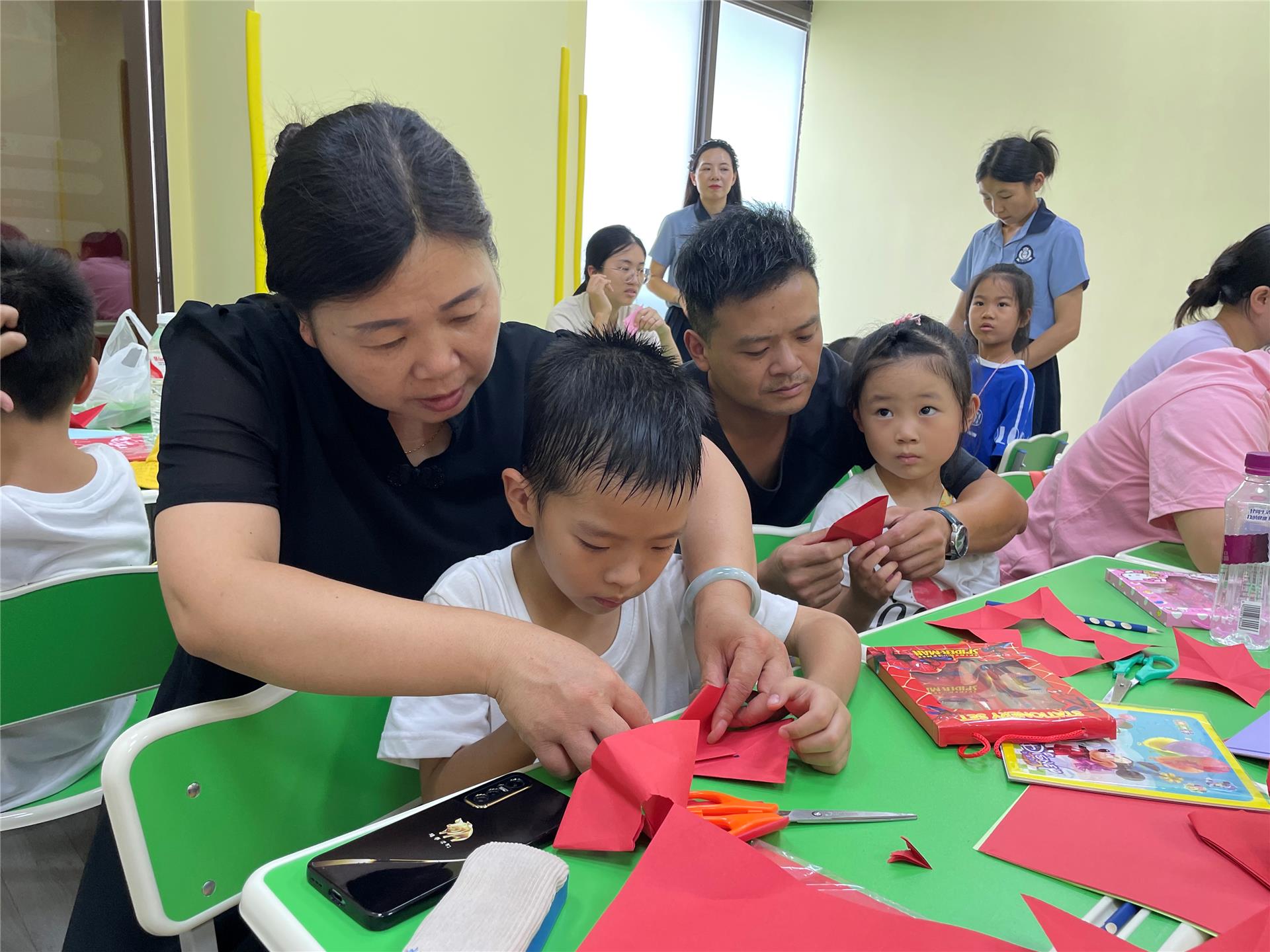 随后,家长和孩子们纷纷拿起剪刀,沉浸在剪纸艺术的世界中。孩子们好奇地观察着剪纸的每一个步骤,小手虽然略显生疏,但眼神中充满了专注和认真。家长们则在一旁细心协助,亲子之间的默契配合让现场氛围温馨而融洽。