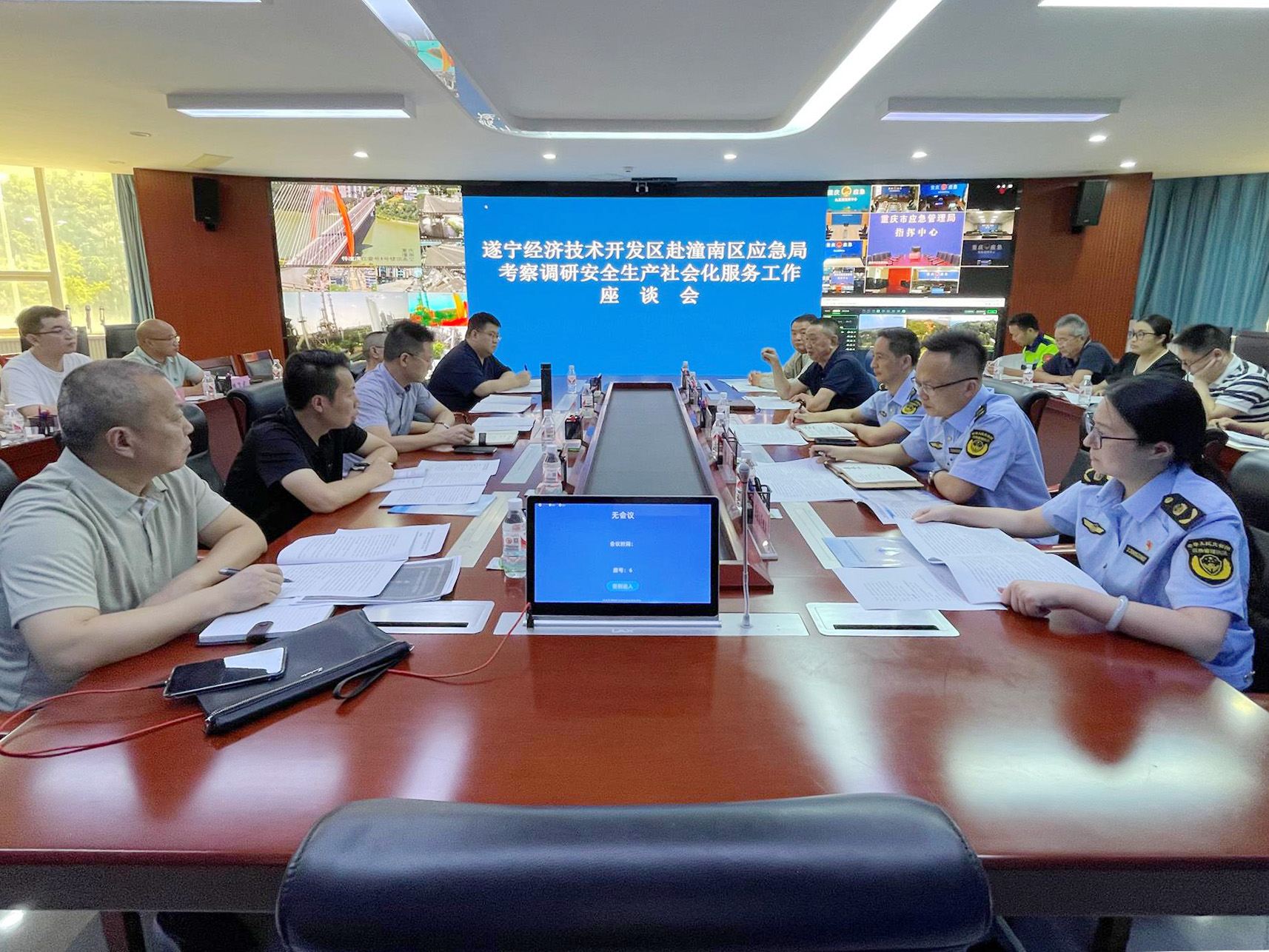 座谈会上,遂潼两地结合安全生产社会化服务工作情况,围绕综合安全生产技术服务、专项(单项)安全生产技术服务、安全教育培训等方面,交流了两地在安全生产社会化服务机构建设运营中的实践经验。