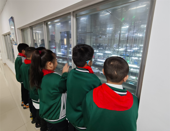 随后,孩子们进入可以近距离参观生产线的长廊中,观察生产线上原料选择、加工制作、质量检测等各个环节,对食品从原料到成品的整个转化过程有了直观的认识。