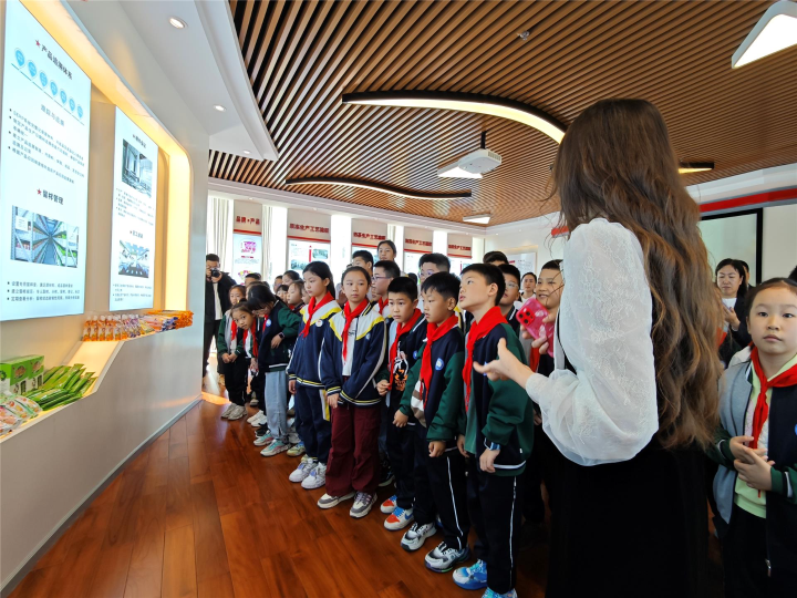 来自四川师范大学附属遂州实验学校和重庆市潼南区潼州小学的孩子们,首先来到四川喜之郎食品有限公司企业展厅,通过观看展板、视频和实物,初步了解了果冻等休闲食品的生产流程和品质控制要点等信息。