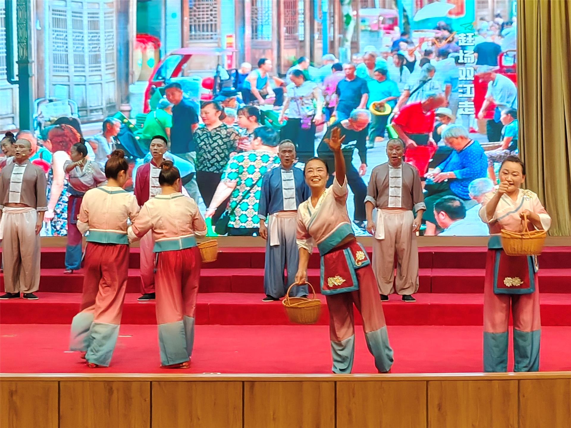 表演唱《赶场双江走》在2024年6月经过精心的重新编排后再次呈现,巧妙地将川渝方言的韵味、潼南的美食文化以及双江地区的文旅打卡点等地方特色元素融入其中。通过视频与现场演出的完美结合,观众仿佛穿越时空,身临其境地感受到了双江古镇的热闹与繁荣,体验了一次别开生面的文化之旅。