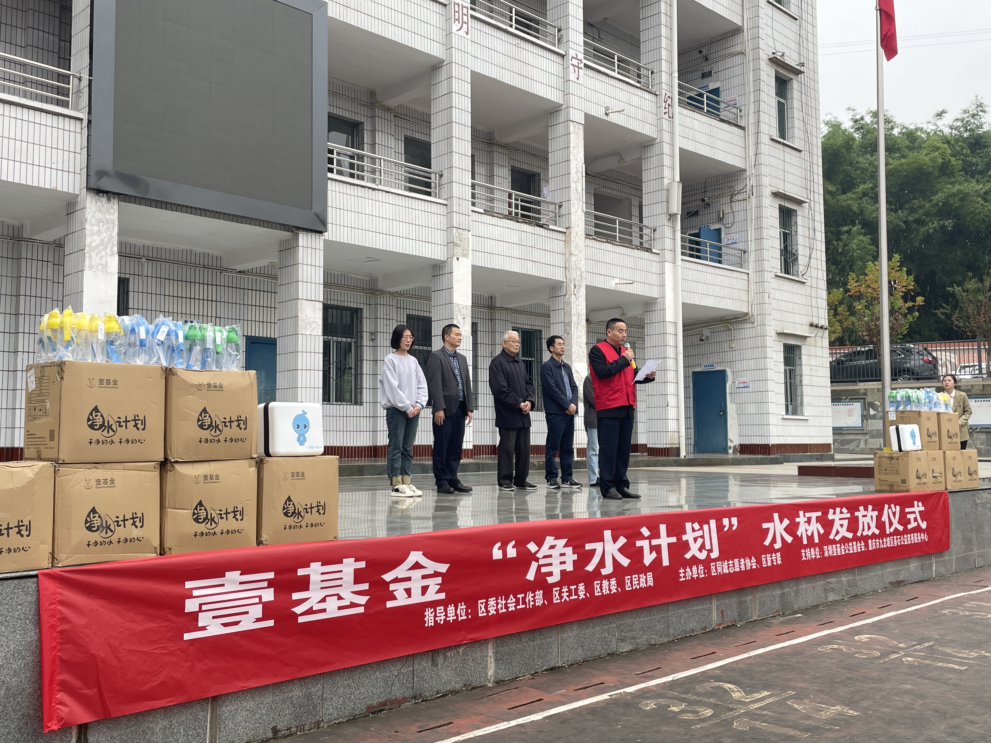 11月15日,壹基金“净水计划”水杯发放仪式在塘坝小学校举行。