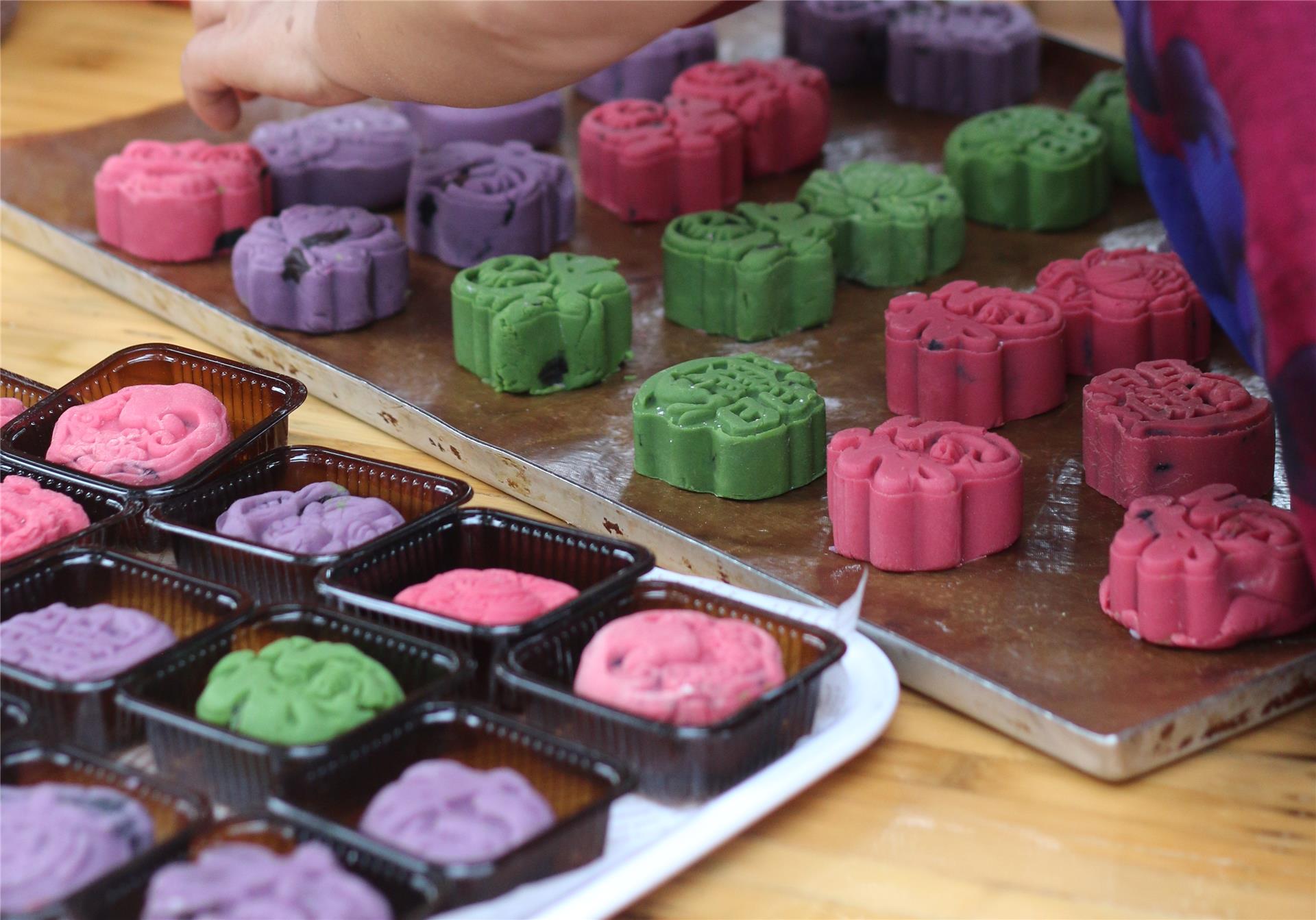 活动中,志愿者和老人们现场制作月饼,让大家感受到亲手制作传统美食的乐趣与成就感,在月饼中承载着团圆和美好,加深彼此之间的情感联系。