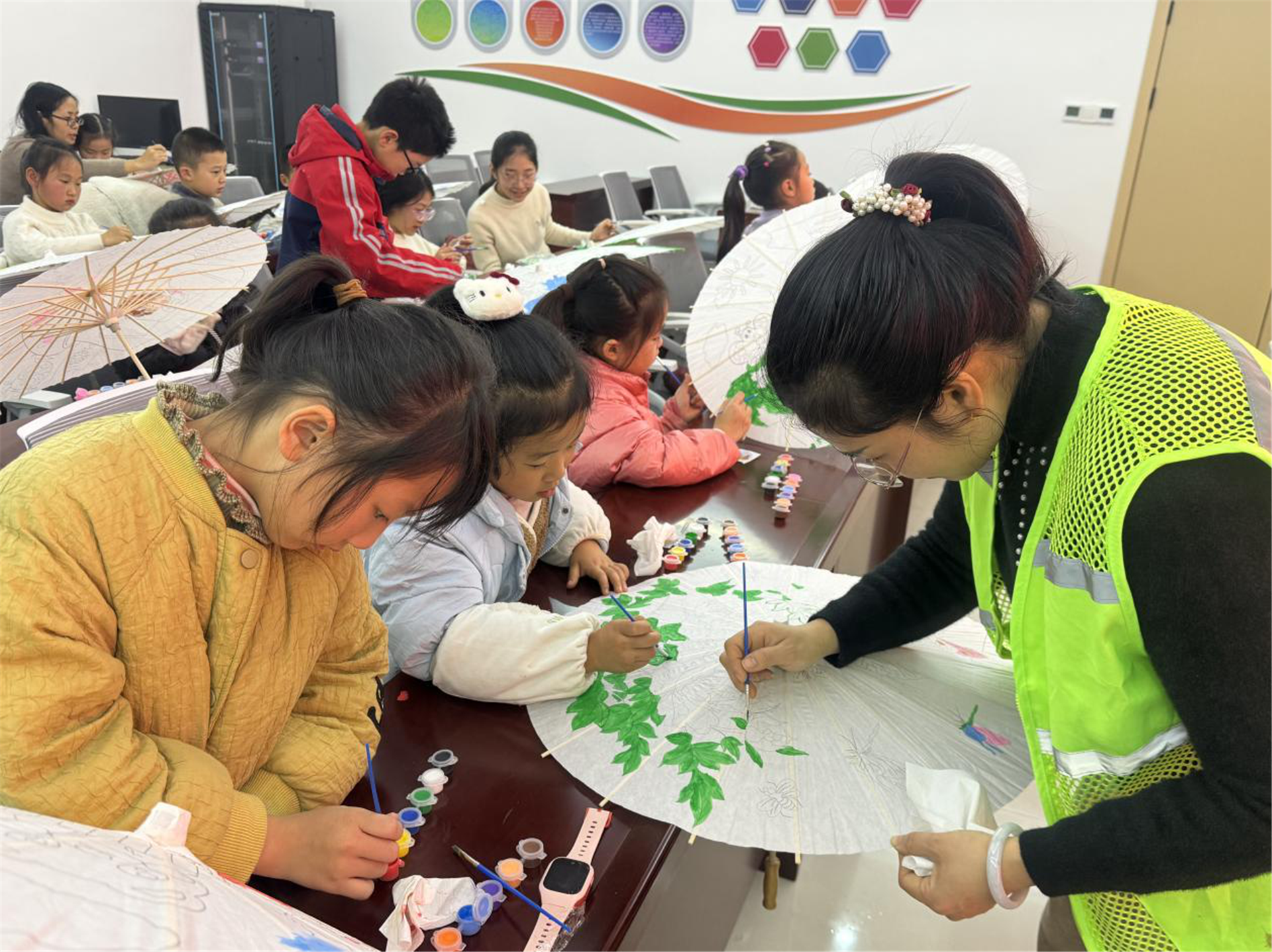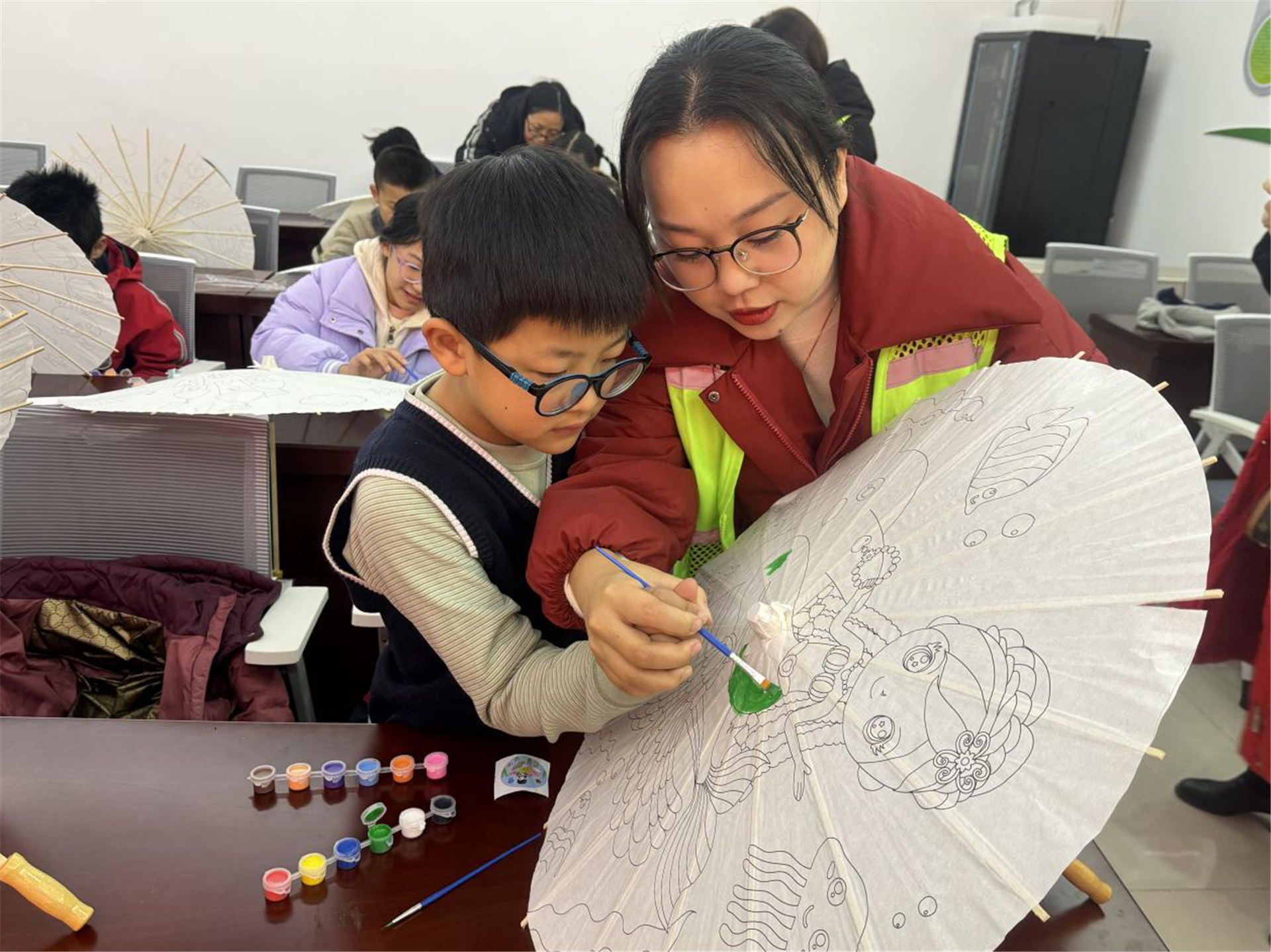 随后,工作人员将一套套油纸伞制作材料包发到孩子手中,孩子们在志愿者的带领下,用鲜艳的色彩描绘出心中的图案,用灵巧的双手在伞面上涂抹勾勒,将天马行空的想象化为一幅幅独一无二的艺术作品。