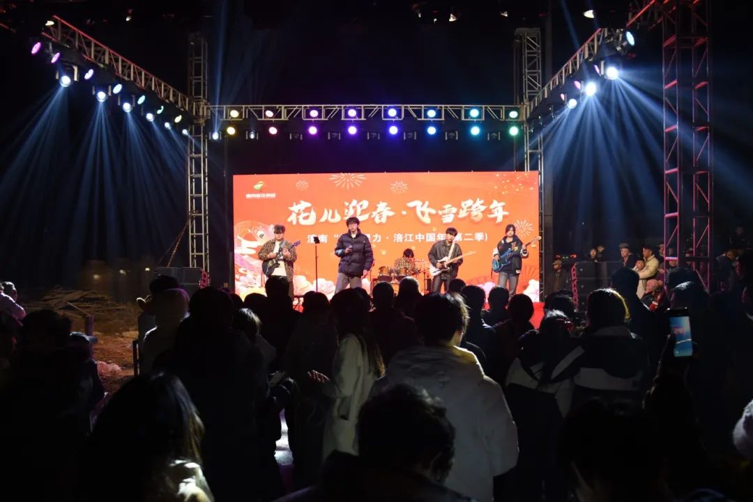 幸福街花儿巷举办的花儿千灯·飞雪跨年狂欢夜同样精彩不断。游客们漫步在千盏花灯下,猜灯谜、品年味,感受传统年俗的乐趣;在跨年音乐会上,与DJ乐队现场互动,嗨歌热舞,共同迎接新年的到来,现场充满了欢声笑语和青春活力。