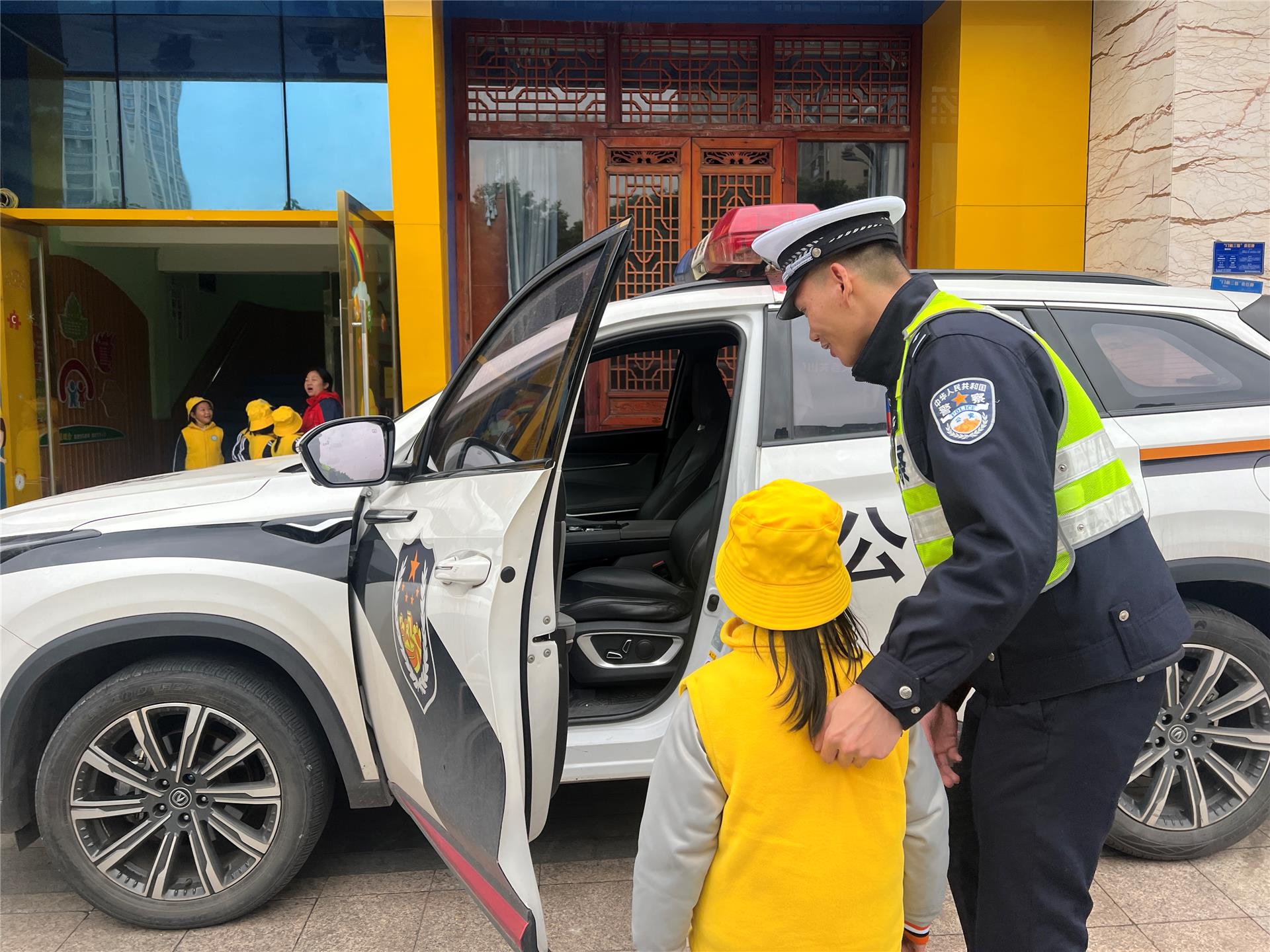 11月29日,区公安局交巡警支队组织辖区金苹果幼儿园、旭日幼儿园、健能绿都幼儿园、双江金龙育才幼儿园共同开展“文明交通、携手共创”主题宣传活动。