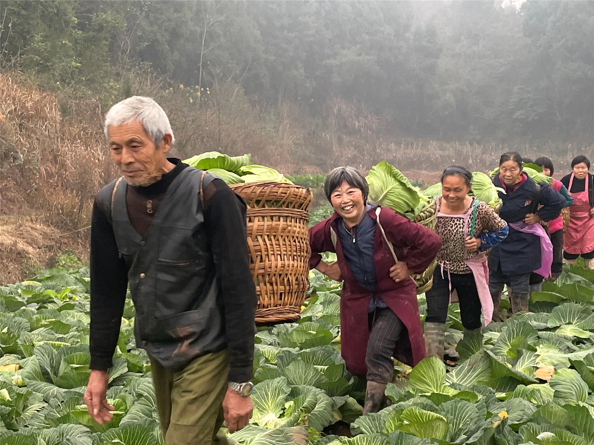 1月23日,记者走进莲白种植地里,30余名菜农穿梭在菜地间,收割、搬运、装车,大家忙而有序。