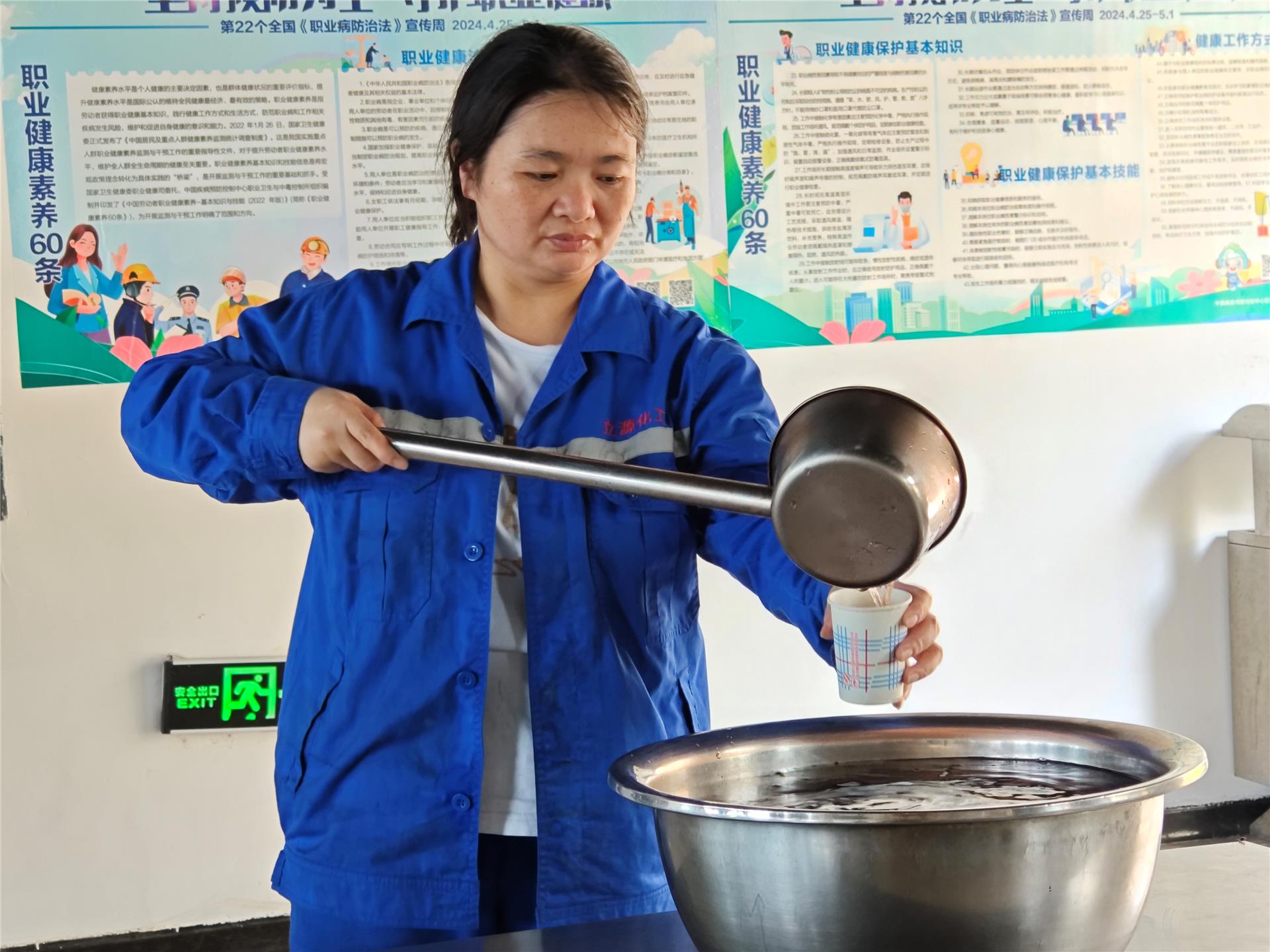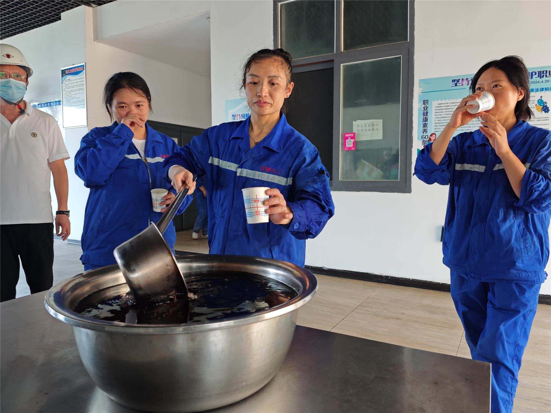 “这酸梅汤喝着真解暑,再来一杯!”在位于潼南高新区北区的重庆民丰化工有限责任公司(下称民丰化工)生产车间内,工人们正在排队领取酸梅汤。