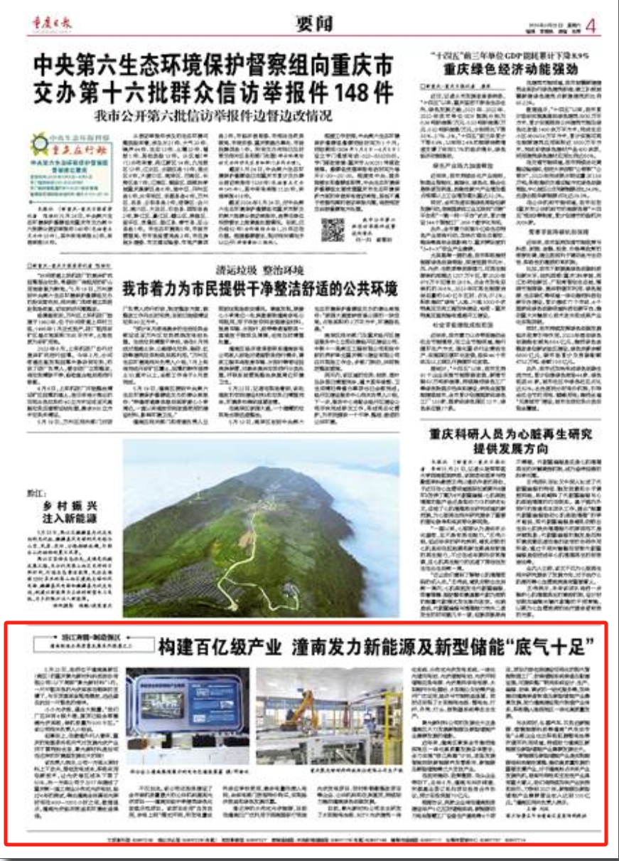 聚光新材料公司的发展壮大正是潼南区大力发展新能源及新型储能产业集群发展的缩影。