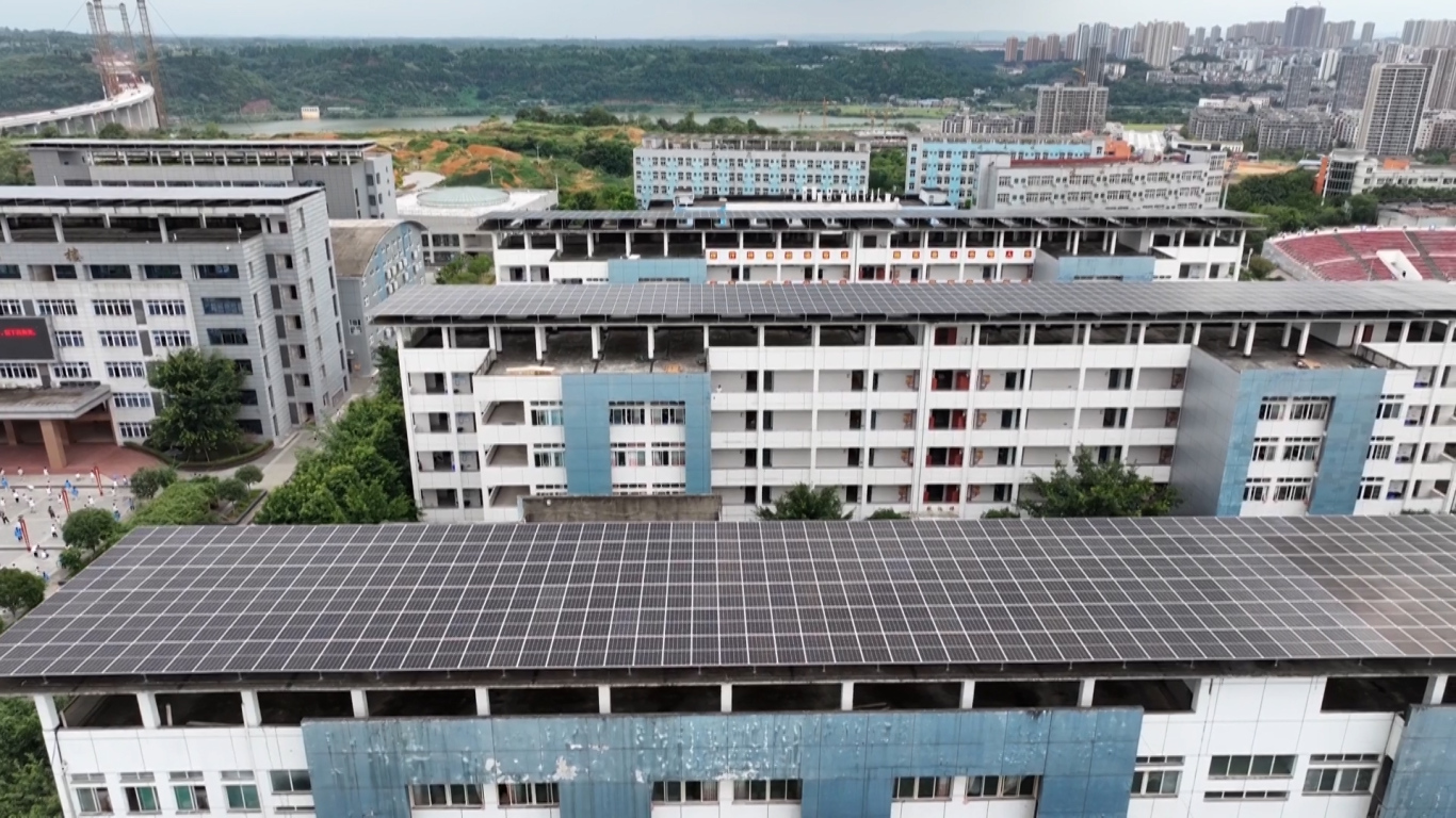 不仅如此,该公司还投资建设了全市装机容量最大的公共机构屋面光伏项目——潼南实验中学建筑绿色化改造示范项目。该项目采用“自发自用,余电上网”模式并网,所发电量优先供应学校使用,剩余电量则接入电网,由供电部门按指导价购买,实现经济效益和绿色发展双赢。