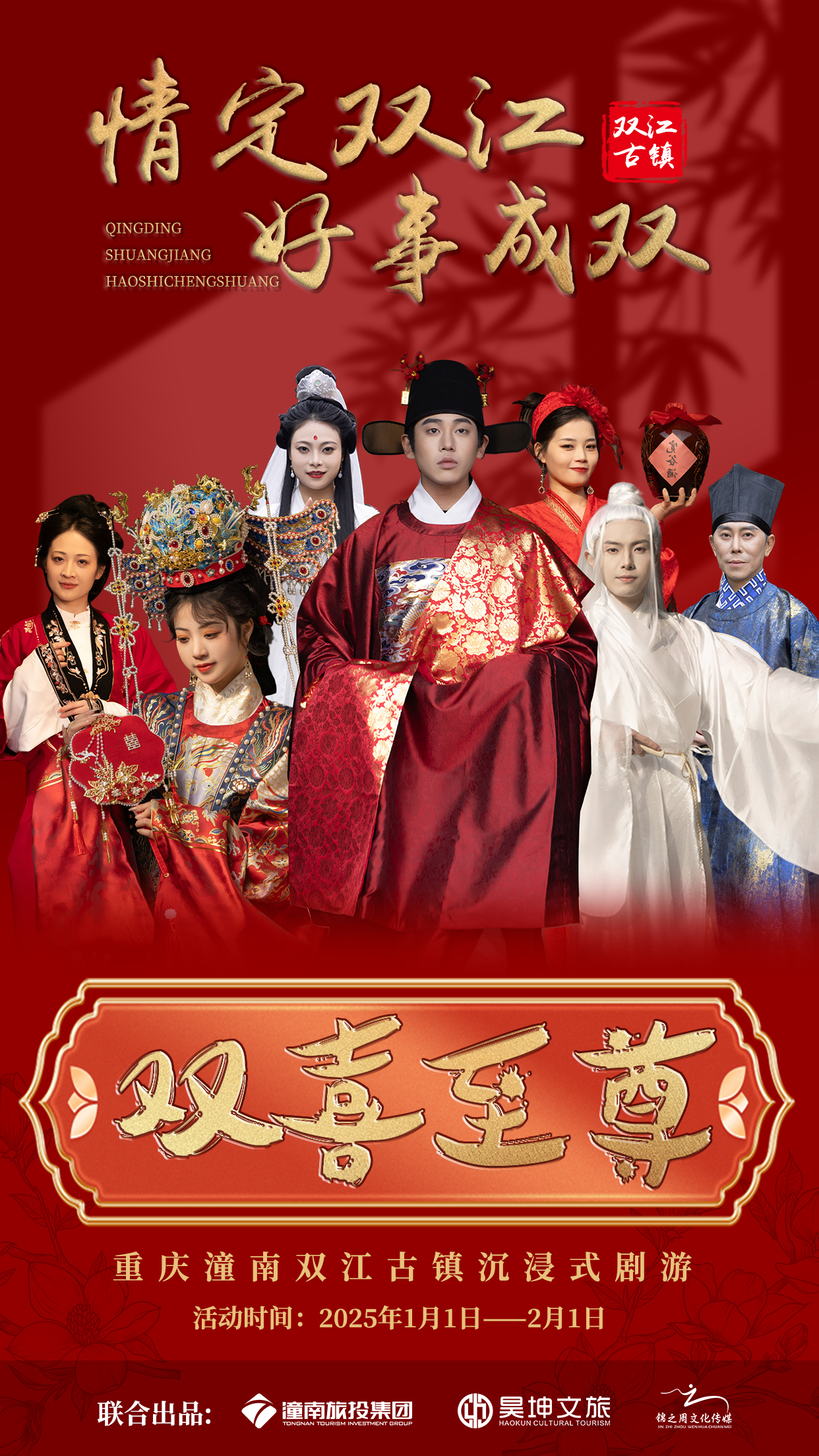 结合汉婚主题剧游,潼南区旅投集团联动区民政局,在双江古镇景区设立潼南婚姻登记分点,配备了婚姻文化长廊、颁证大厅、婚俗展厅等配套设施,打造了红线长廊、执手偕老、甜蜜阶梯、80年代的爱情等主题婚姻打卡点,为领证新人提供沉浸式婚姻登记场景体验,开设婚庆、餐饮、摄影、剧游等特色化一站式服务,通过“文旅+婚姻+剧游”的融合发展新模式,推动潼南文化旅游新业态。