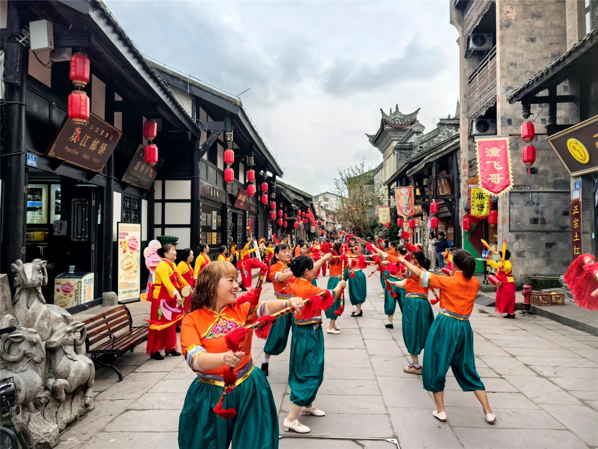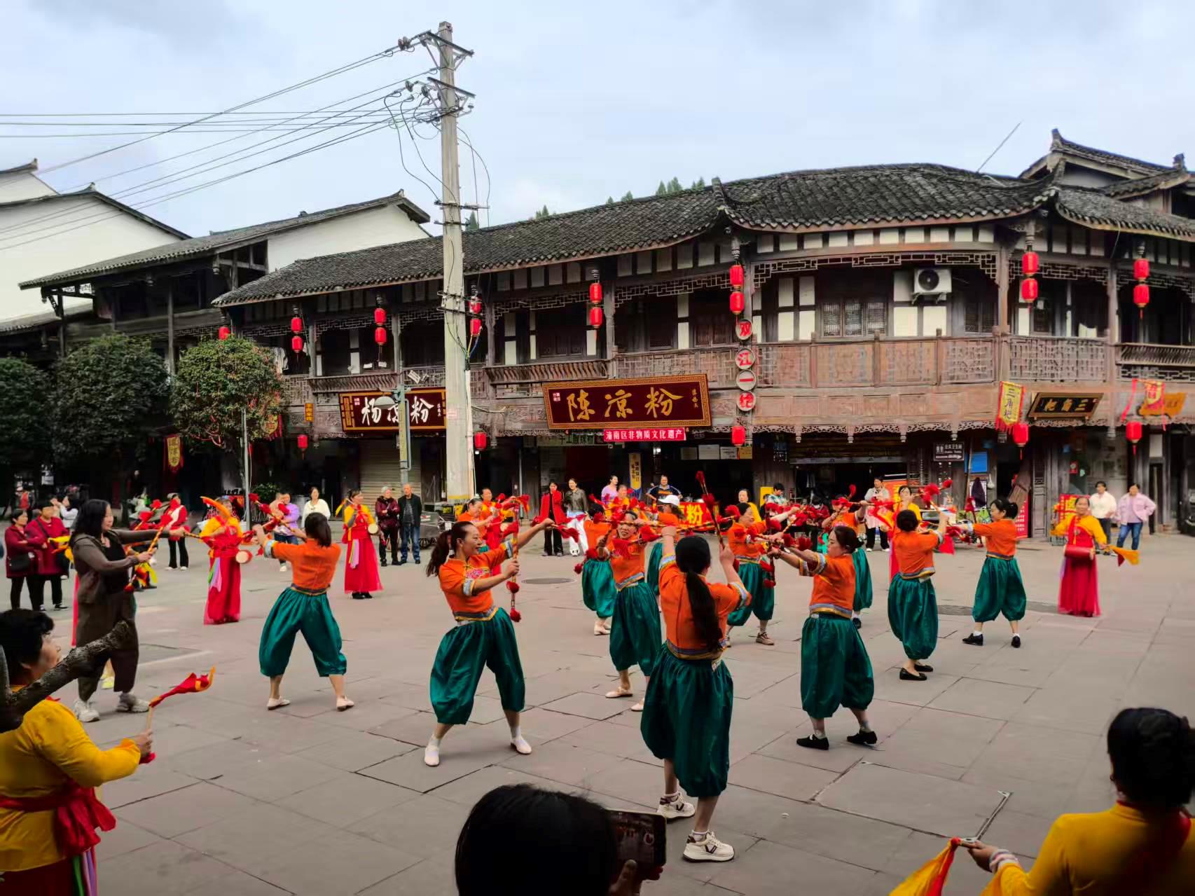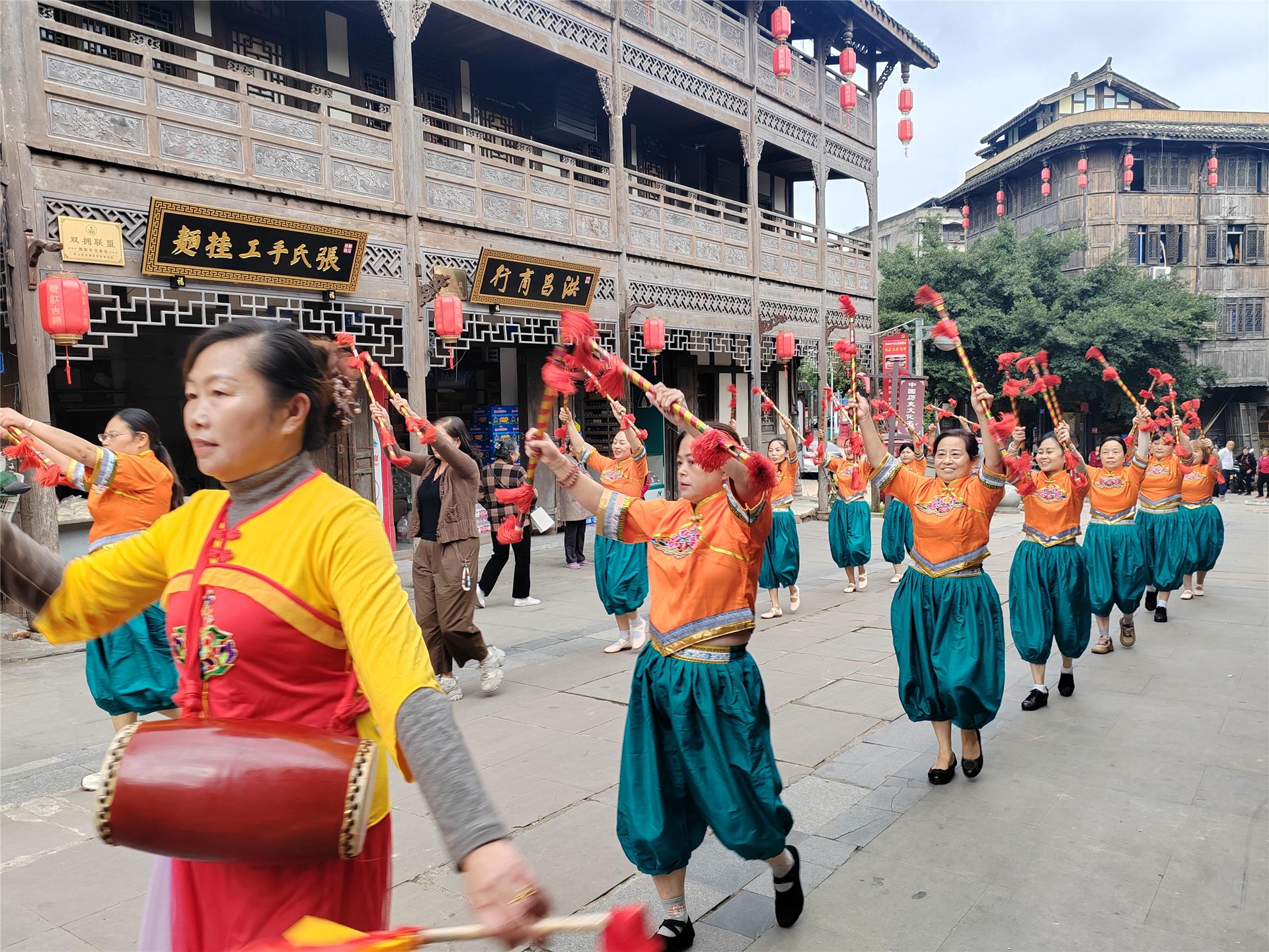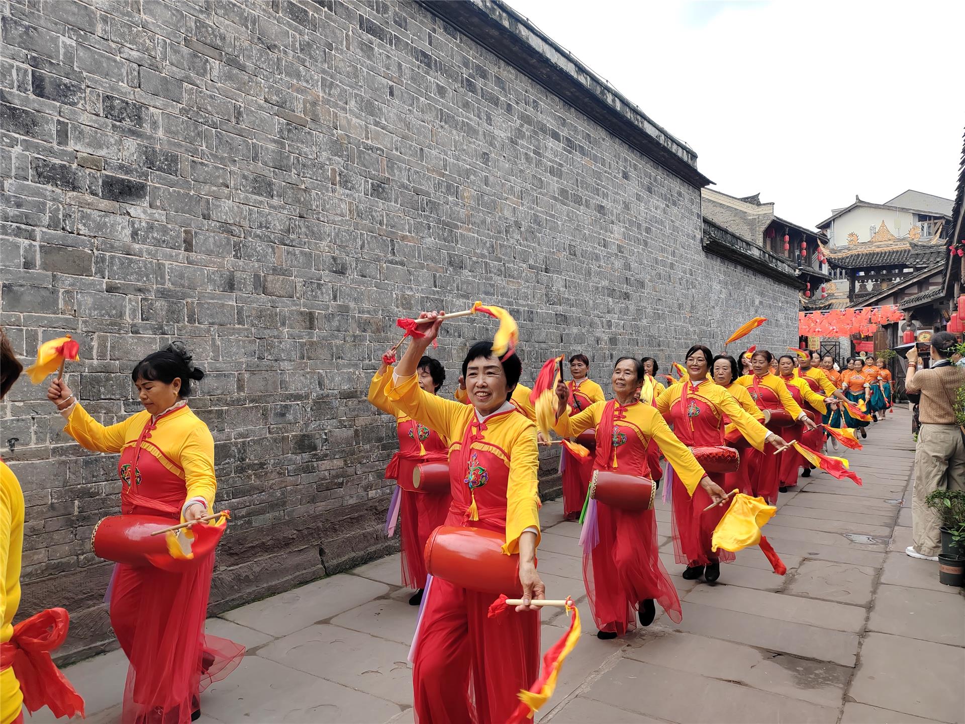 这场洋溢着鼓点与竹韵的"流动民俗秀",既传承了非遗文化,又为古镇重阳增添了温暖祥和的节日氛围,让居民在"老味道"与"新活力"中感受到"不必远行"的节日乐趣。