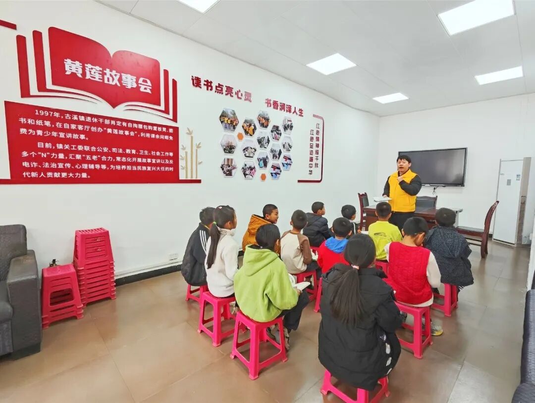 肖定有的坚守也带动了更多人:“五老”志愿者、大学生、村干部纷纷加入,有人辅导功课,有人组织活动,有人捐赠物资。“以前肖老一个人扛,现在我们的志愿者队伍增加到了20余人。”古溪镇关工委副主任杜艳说,我们古溪镇党委政府也从改善场地、增加设施设备方面大力支持,把“黄莲故事会”打造成关爱青少年的品牌。