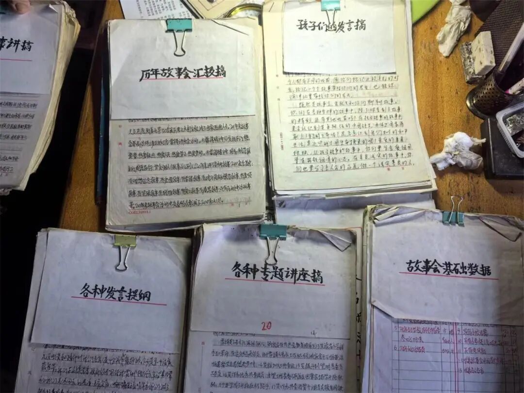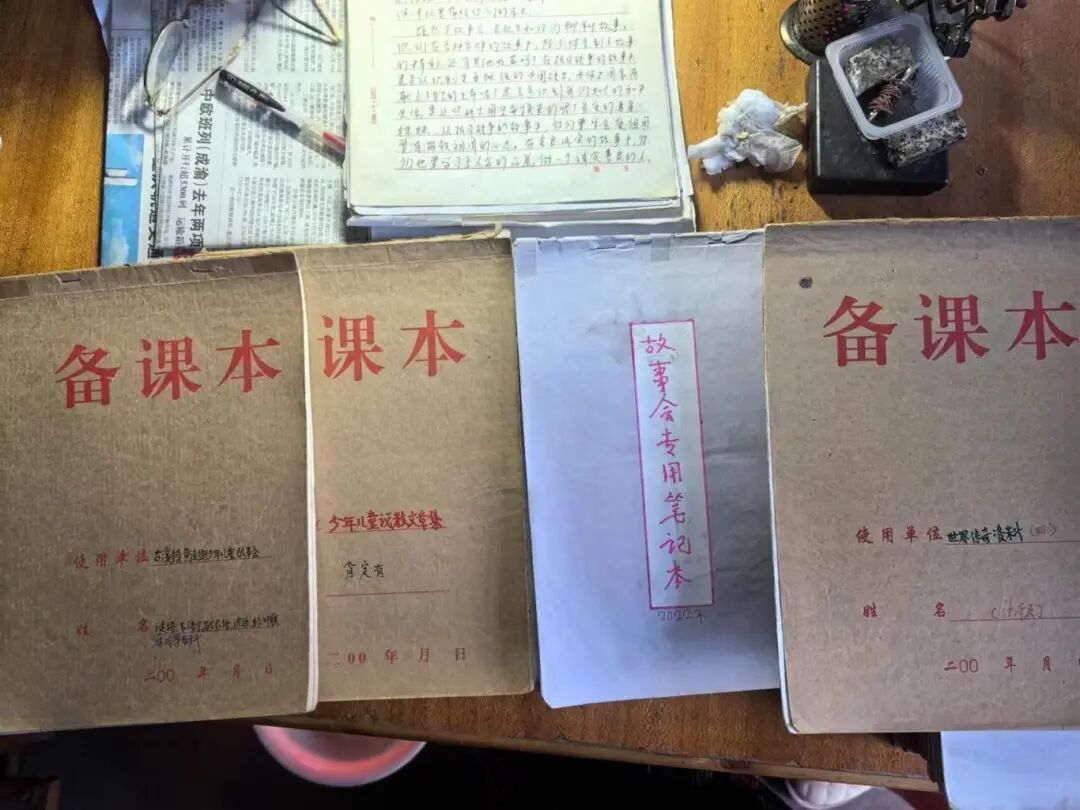 “讲给娃娃的故事,不能只讲道理,要有趣他们才喜欢听。”这是肖定有的信条。为备好课,他案头堆满书报,每晚戴老花镜读到深夜,遇到好故事就用红笔圈划、摘抄,再结合孩子实际改编。他的备课本虽页面泛黄、胶带粘贴,却依旧整洁。