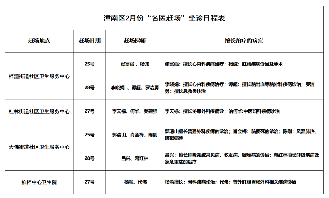 @潼南人 “名医赶场”日程表来了,直达各镇街!