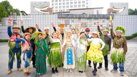 当亲手缝制的“蔬菜华服”穿在身上,田间的农人便成了舞台上最亮眼的“民星”。