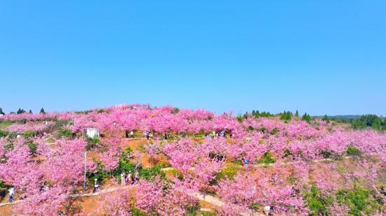 春回大地,万物复苏,随着气温的持续回升,我区迎来了踏青赏花的最佳时节。日前,位于梓潼街道五郎村的三舍农庄内,成片樱花正悄然绽放,粉色的花海点缀山间,吸引着众多游客前来打卡留念,与春日浪漫撞个满怀。