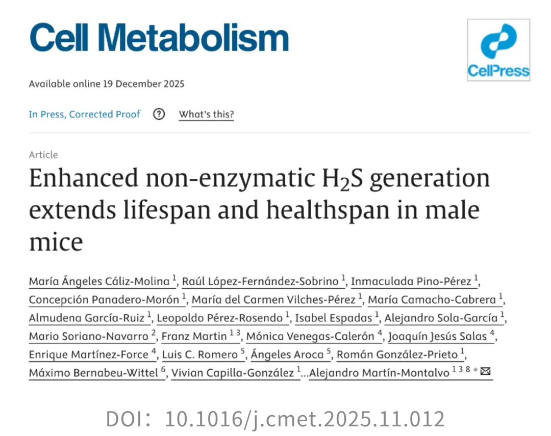 2025年底,西班牙塞维利亚大学研究团队在《Cell Metabolism》发表的研究发现,大蒜中的天然二烯丙基硫化物可通过非酶促方式提升硫化氢(H₂S)生成,显著延长雄性小鼠的寿命(中位寿命延长11.4%)与健康寿命,并改善代谢、神经认知与运动功能。