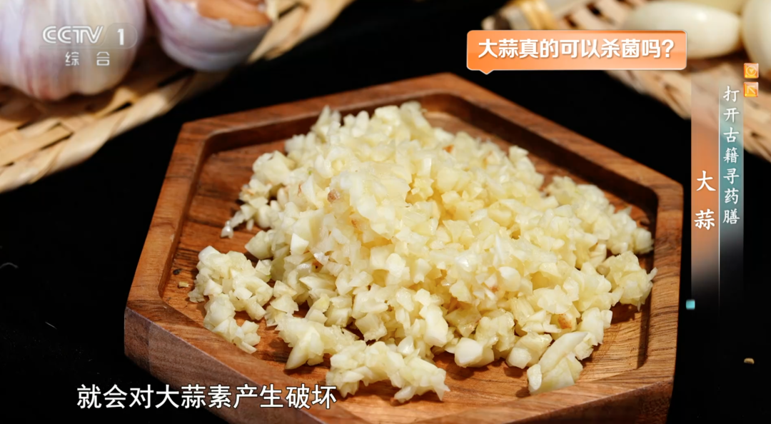 新鲜大蒜中并没有大蒜素,当大蒜组织被破坏(如切割或挤压),其内在物质受到外力作用后才会生成大蒜素。并且大蒜越碎,产生的大蒜素就越多,所以最好把大蒜捣成蒜泥,静置15分钟后再食用 ,让大蒜素充分生成。