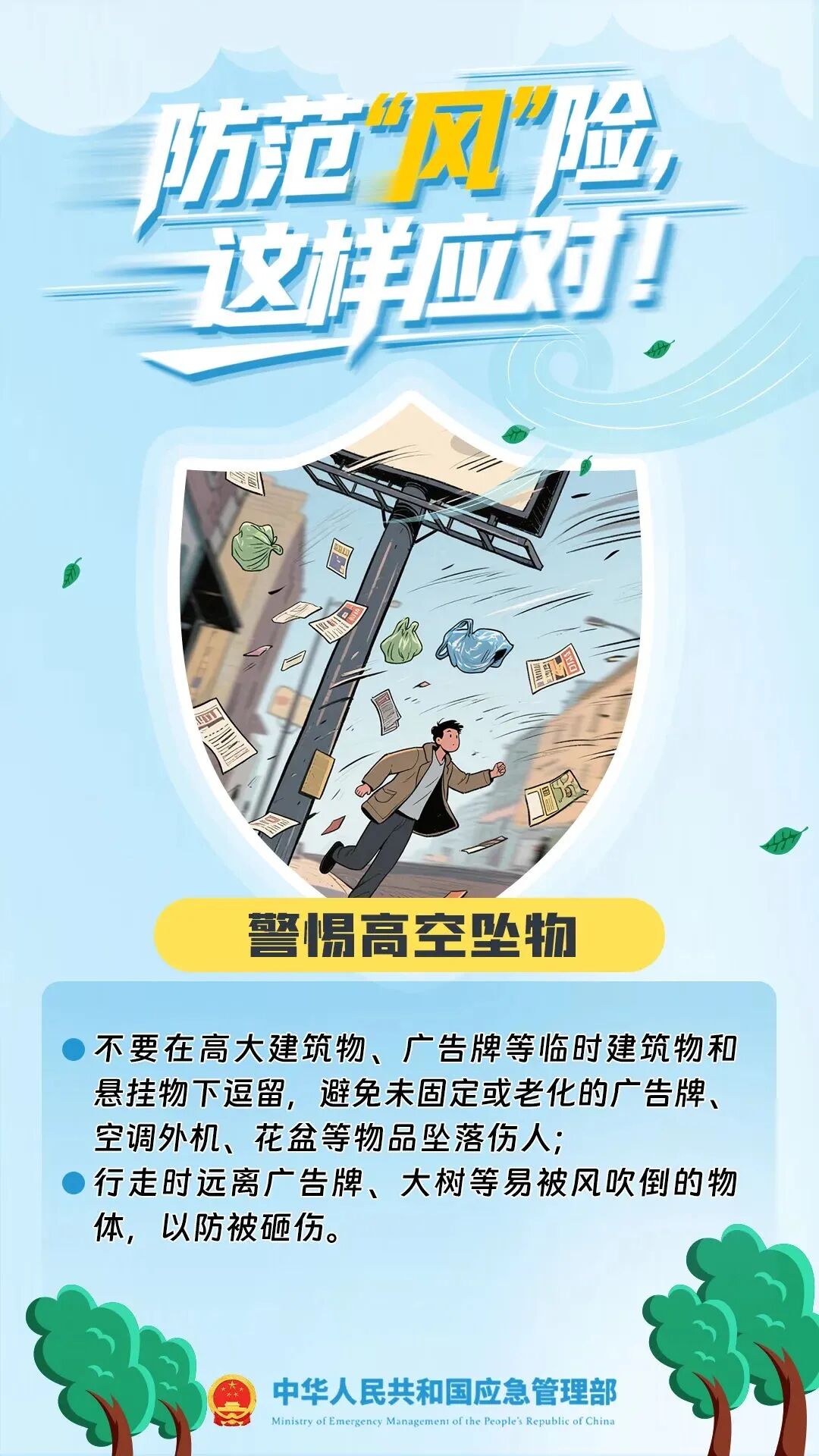 1.关好门窗,非必要不外出。妥善处置窗台、阳台等室外搁置物。